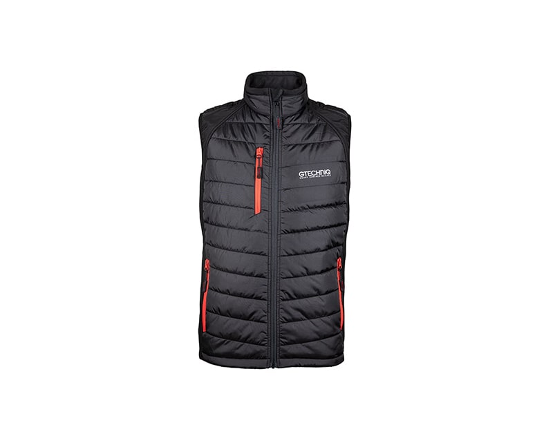 Een casual combinatie van vulling en softshell, geeft ideale extra warmte zonder extra gewicht. Deze gewatteerde bodywarmer heeft het Gtechniq-logo op de borst en nek met contrasterende rode ritsen. Dit item is gemaakt van gerecyclede plastic flessen. Beschikbaar in Small, Medium, Large, X Large, XX Large